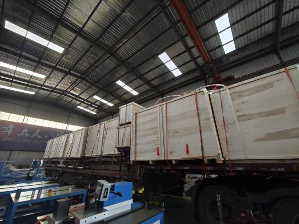 近日,我们公司成功制造了十六台全自动卷绕机,这些高质量的产品被包装准备出口到遥远的阿富汗。