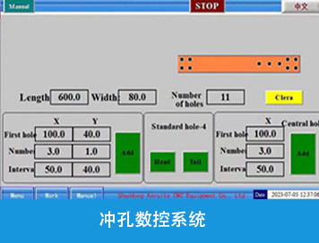 | 剪切:通过触摸屏设定需要剪切的尺寸进行自动定位。 | 冲孔:通过触摸屏设定需要冲孔的距离和孔距Y轴和X轴自动调节定位从而实现了真正意义上的无需划线高精度冲孔。 |
