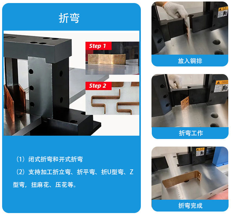 数控系统采用最高配的西门子系统,可计算铜排的多种折弯角度和展开长度,为用户节省材料,可存储多组参数以备下次使用,无需重复编辑。